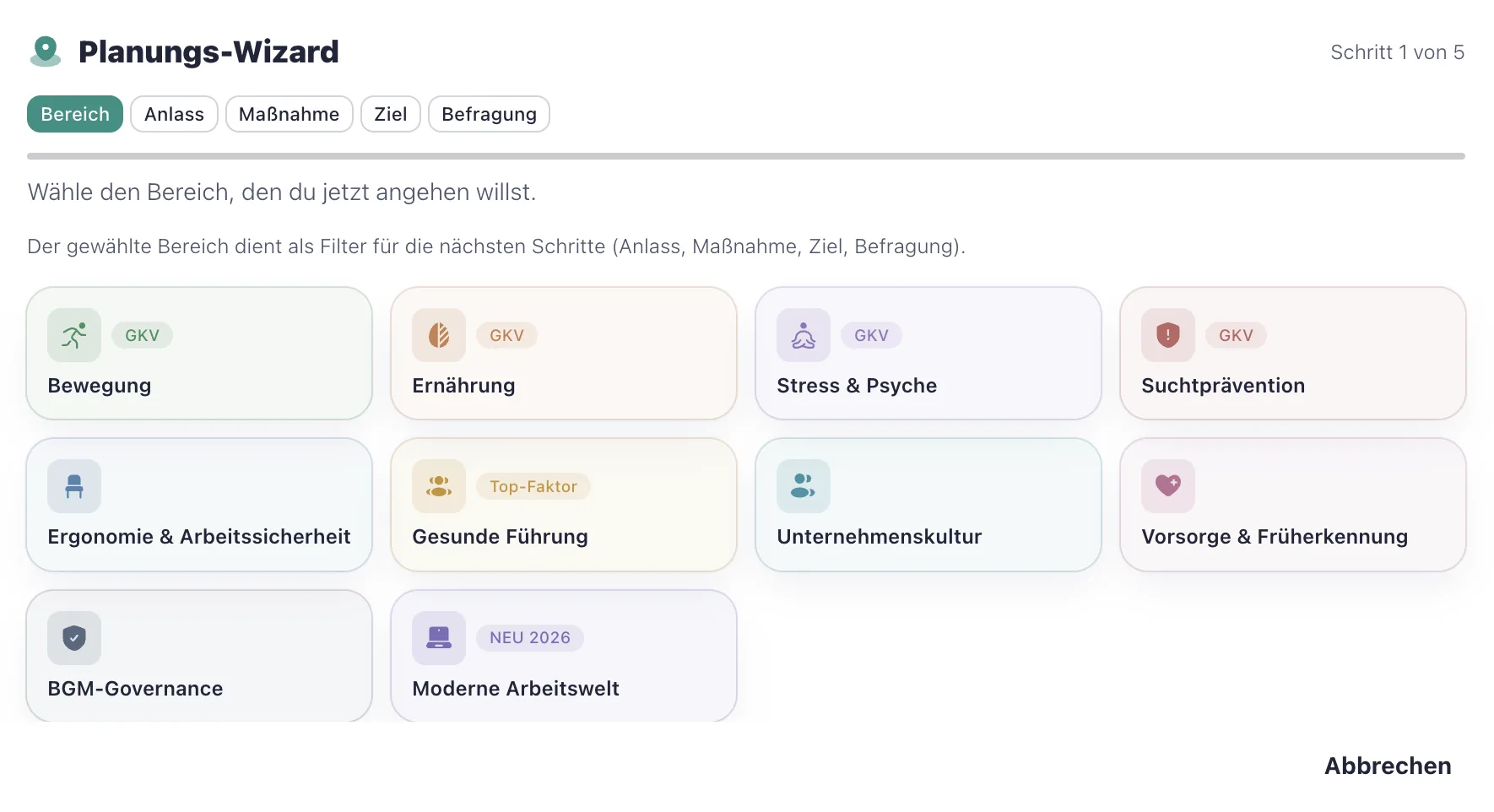 - Analysiert euren BGF-Reifegrad & empfiehlt Maßnahmen